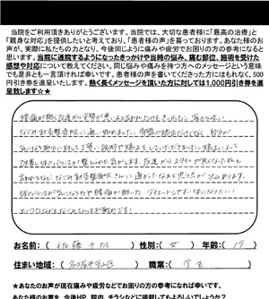 腰痛が酷く友達から姿勢が悪いよと言われたのをきっかけに家から近いなごみ針灸整骨院に通い始めました。