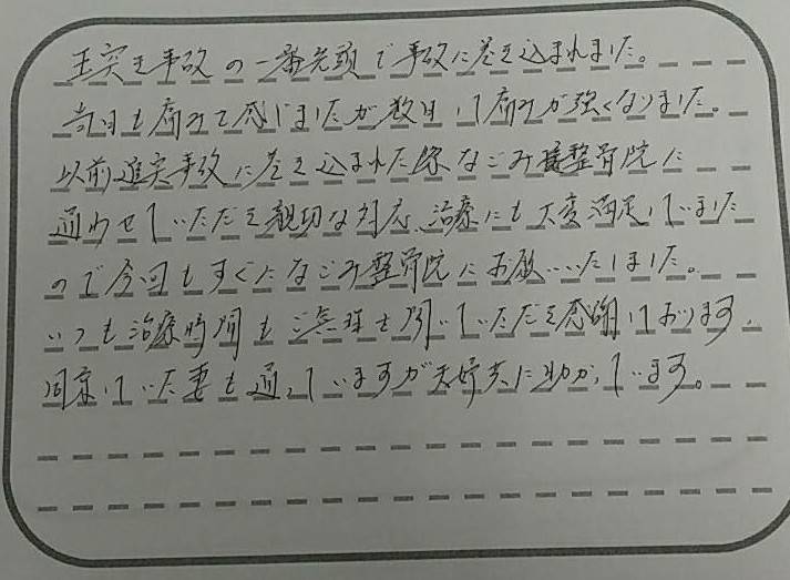 砂田橋院で施術を受けられた患者様の声