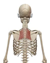菱形筋には大・小の2つがあり、背骨(胸椎)から肩甲骨の内縁にかけて走っています。