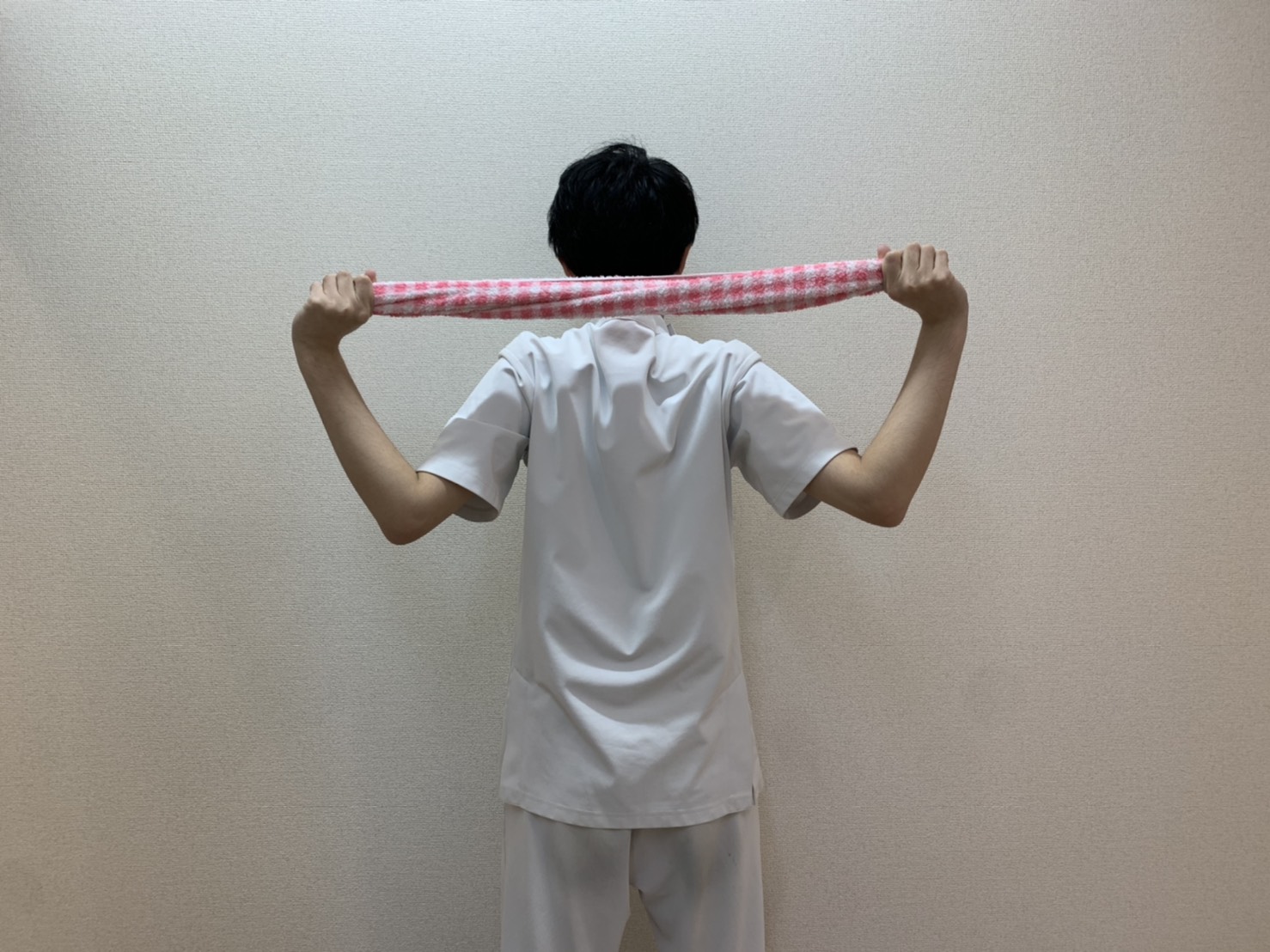タオルを使った背中ストレッチ